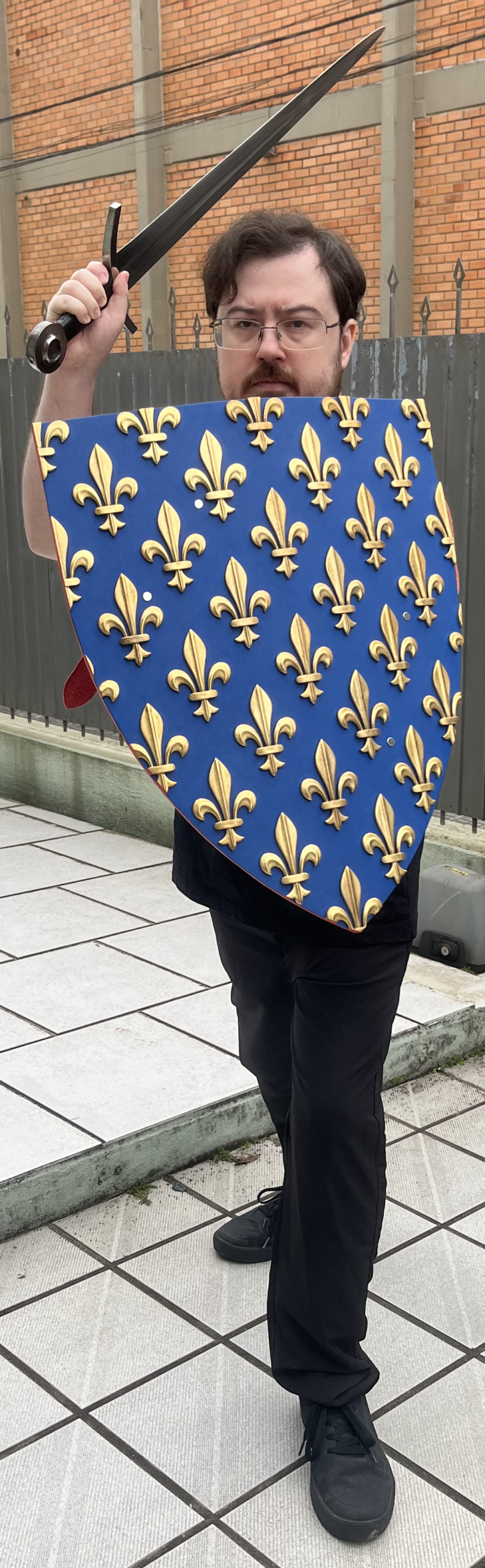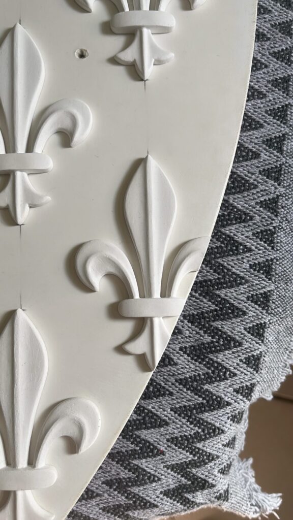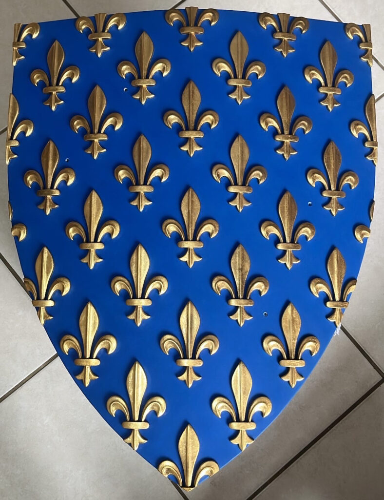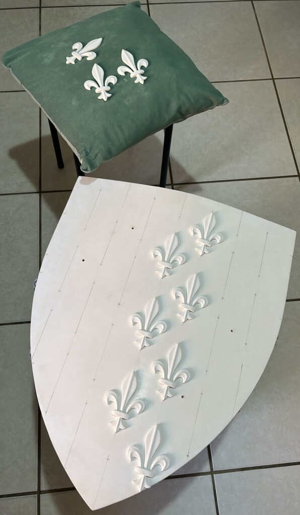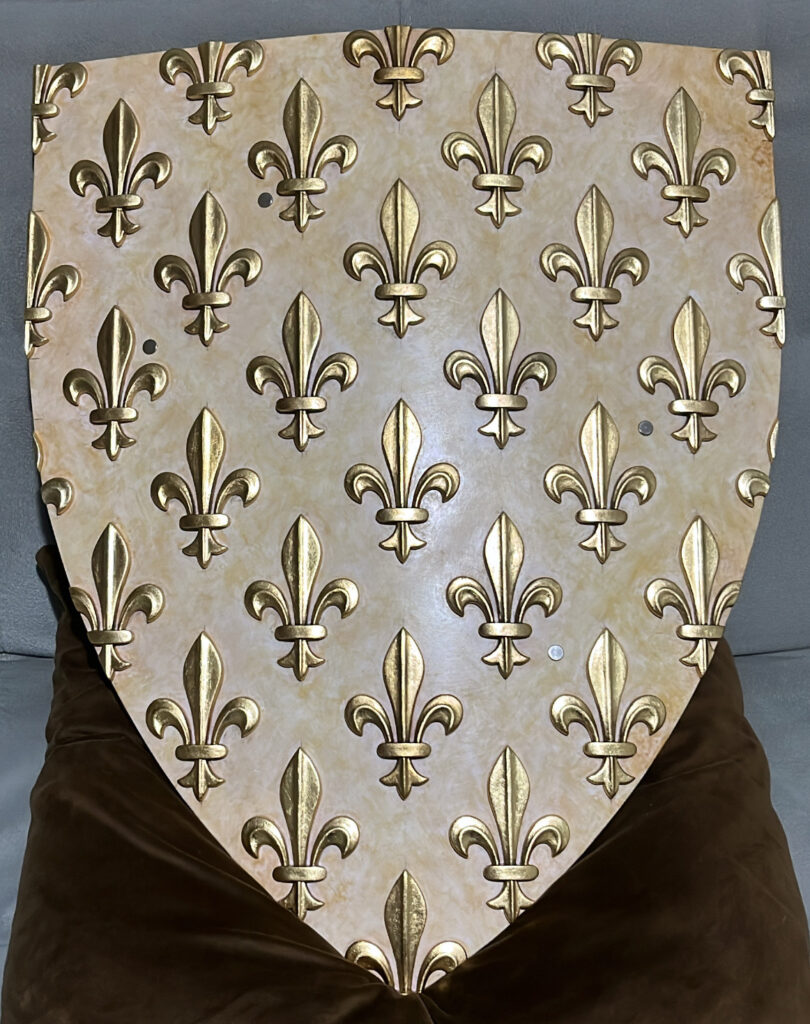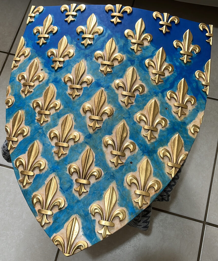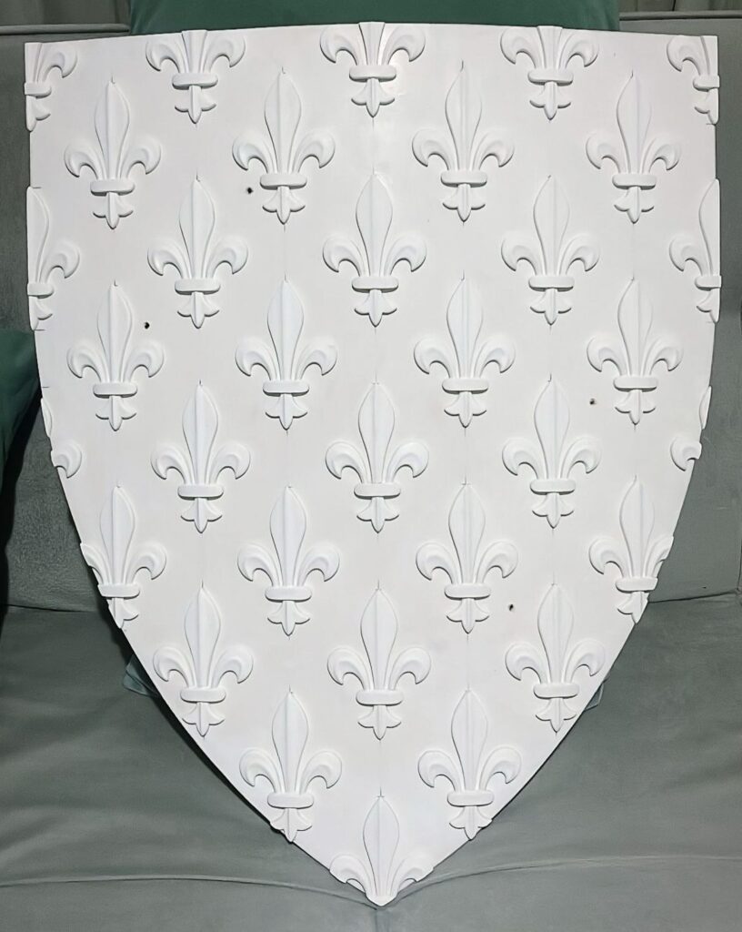 Este texto descreve as etapas mais específicas da fabricação de um escudo com figuras de alto-relevo produzidas em gesso. Trata-se de uma reconstrução plausível do escudo de São Luís (Luís IX), Rei da França, baseada em ilustrações de manuscritos medievais e estudos artísticos modernos.
